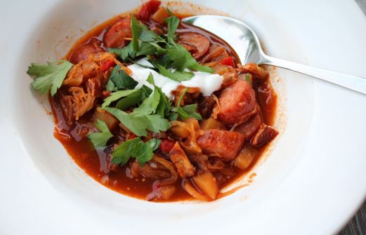Sauerkrautsuppe ungarisch in Anlehnung ein Rezept aus Gabis Kochbuch 52 Wochen - 52 Suppen . Etwas verändert und angepasst an den 1,5 l Slowcooker, ich mag es gerne etwas würziger. Keine Angst vor den vielen Zutaten ist alles recht einfach. 1 Zwiebel 3 Knoblauchzehen 70 g Speck [...]