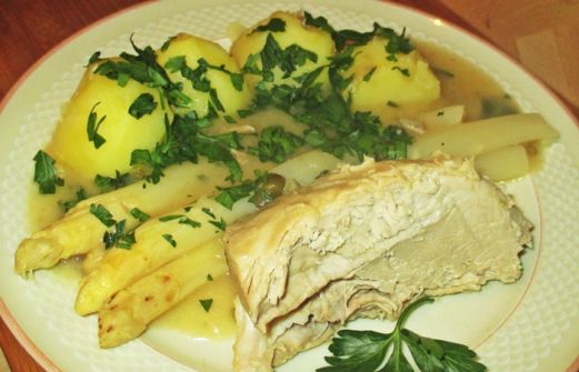 Dazu der letzte Spargel für dieses Jahr. Ist hier die letzte Woche, dass es ihn gibt Für 3 Personen 1 Kilogramm Schweineschinken frisch 1 Markknochen 2 Zwiebeln gehackt 2 Lorbeerblätter 6 [...]