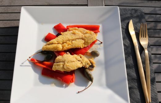 Der Fisch bleibt schön saftig von innen und wird in seinem Mantel knusprig von außen. Reicht für 2 Portionen als Vorspeise .