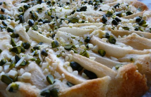 4 Birnen 3 EL Zitronensaft 150 g Butter 120 g Zucker gemahlene Vanille 1 Ei 1/2 TL Yuzuzesten (alternativ Schale einer Bio-Zitrone) 150 g Mehl 1 TL Backpulver 1 Prise Salz 1 EL Cointreau 2 EL gehackte Pistazien 1 EL gehackte Mandeln etwas Puderzucker Birnen waschen, vierteln, en [...]