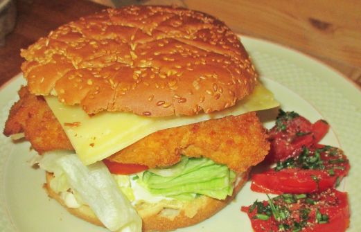 Für 2 Personen 2 Hamburger Bötchen mit Sesam 2 Schweineschnitzel gebraten 2 Esslöffel Mayonnaise 4 Frühlingszwiebel frisch aufgeschnitten 2 Hand voll Eisbergsalat klein geschnitten 2 Scheiben Tomaten 4 Scheiben Bergkäse Die Brötchen halbieren und mit den Innenseiten na [...]