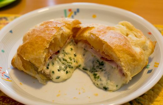 Zutaten: 1 Knoblauchzehen Schnittlauch 1 ganzer Camembert 6-8 Scheiben Schinken 1 Packung Blätterteig 1 Eigelb Zubereitung: Den Backofen auf 200°C vorheizen. Den Knoblauch fein würfeln. Schnittlauch fein schneiden. Den Deckel vom Camembert abschneiden und die Knoblauchstücke auf [...]