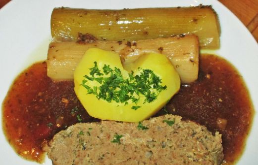 Mit Porree in der Soße gegart. Das ergab für alles einen guten Geschmack. Für 3 Personen Für das Hackfleisch 500 Gramm Hackfleisch gemischt 1 grosse Zwiebel gewürfelt 2 Teelöffel Senf 1 Ei Freiland 0,5 Bund Petersilie frisch gehackt 1 Brötchen alt in Wasser eingeweicht 1,5 Teelö [...]