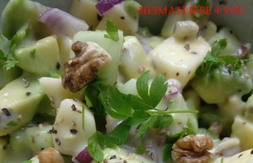 Zart, süß-sauer, cremig, salzig! Schon mal Äpfel als herzhafte Variante gegessen? HEIMATLIEBE 4 YOU zeigt Euch heute einen sehr leckeren Apfel-Avocado-Salat mit Walnüssen . Die süß-sauren Äpfel und die knackigen Nüsse sind die pefekte Geschmacksvariante zur cremigen Avocado.