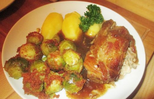 Dazu den ersten Rosenkohl dieses Jahr Für 3-4 Personen Für das Fleisch 1200 GR Schweinenacken ohne Knochen Salz Pfeffer schwarz frisch gemahlen 2 grosse Zwiebeln gehackt 1 Tomate geviertelt 1 grosse Knoblauchzehe gehackt 1 EL Butter 500 ML Wasser 1 TL Thymian getrocknet 1 T [...]