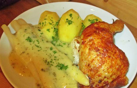 Für 3-4 Personen Der Broiler 1 Broiler frisch 1 Esslöffel Paprika edelsüß Pfeffer aus der Mühle schwarz 0,5 Tasse Sonnenblumenöl Salz Der Spargel 1 KG Spargel fri [...]