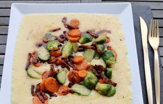 Kartoffelpüree mit Rosenkohl, Speck und Möhren Ich nehme etwas Bitteres (Rosenkohl), etwas Süßes (Möhre) und etwas Herzhaftes (Speck) und gebe es auf etwas Cremigen (Kartoffelpüree). Das kann nur gut werden. Ich hatte die Zutaten noch im Kühlschrank und somit ist es eine leckere Resteverwertung [...]