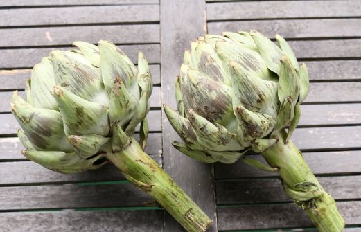 Artischocken putzen Artischocken sind ein Distelgewächs. Ich hatte 2 Artischocken mit je 480 g, davon blieben nach dem Putzen je 100 g übrig, also 20%. Artischocken (große) Zitrone Wasser Salz Wasser in eine Schüssel geben und den Saft einer Zitrone hinein pressen. 1. Den Stiel abbrechen, so zi [...]