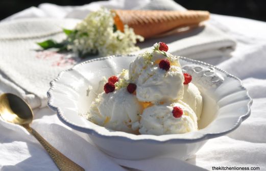 Snow white Elderflower Ice Cream tastes wonderfully tangy, aromatic,
