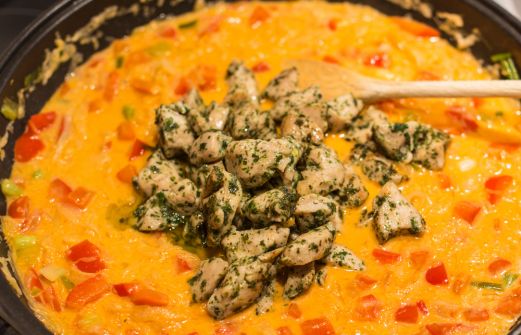 Zutaten: 400g Sauerkraut 500g Hähnchenbrust 2 EL Olivenöl 2 EL gemischte, gehackte Kräuter (z.B. Petersilie, Schnittlauch, etc.) Salz, Pfeffer 2 rote Paprikaschoten 1 kleine rote Chilischote 2 Lauchzwiebeln 1 EL Butter 200 ml Kokosmilch 200 ml Brühe 1-2 TL rote Currypaste Zubereitung: Die Hähnc [...]