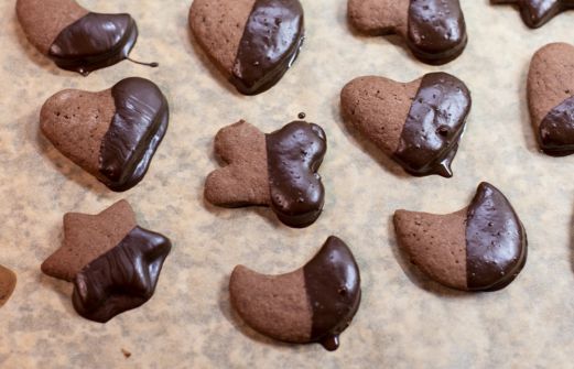 Zutaten: 300 g Mehl 150 g Butter 100 g Zucker 2 Ei ½ Pck. Backpulver 2 EL Kakaopulver, je nach Geschmack Zubereitung: Alle Zutaten zu einem Mürbeteig verarbeiten. Wenn der Teig noch nicht fest genug ist, einfach noch einen oder zwei EL Mehl dazugeben. Der Teig wird in Frischhaltefolie gewi [...]