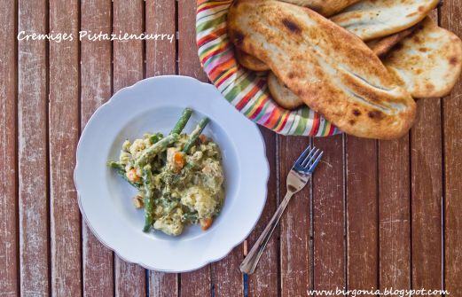 Momentan blättere ich total gerne in dem Kochbuch von Anjum Anand . Das Pistaziencurry klang interessant, also wurden die fehlenden Zutaten besorgt und das Rezept ausprobiert. Dazu passt Reis, Paratha oder Naan . Zutaten: 75 g Pistazien 100 ml Wasser etwa 400 g Gemüse (ich habe 100 g Möhren, 15 [...]
