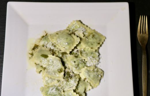 Es gibt gefüllte Ravioli mit Salbei-Trüffelbutter. Die frische Pasta habe