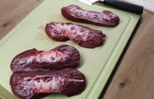 Viele werden jetzt sagen, igitt wie kann man nur. Dabei ist doch gar nichts dabei. Wenn man Glück hat und sie bei einem Metzger bestellt sind sie meist schon geputzt. Ich habe meine im Supermarkt gekauft und da musste ich die ganzen Nierenkelche selber entfernen. Das weiße sind die Nierenkelche [...]