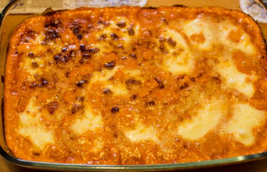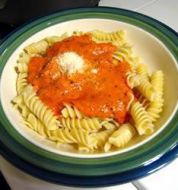 Zutaten: 500g Gnocchi 2 EL Olivenöl 1 Zehe Knoblauch 1 Paprikaschote, 500g passierte Tomaten 200g Frischkäse Salz und Pfeffer 1 Kugel Mozzarella 100g Parmesan Oregano etwas Brühe Zubereitung: Die Gnocchi nach Packungsanweisung kochen.