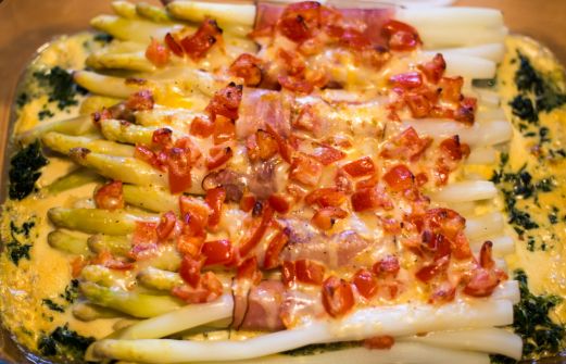 Zutaten: 1 kg Spargel 500g Blattspinat , frisch oder TK 4 Tomaten 8 Scheiben Parmaschinken ca. 100g 150g geriebenen Käse 2 Eigelb 5 EL Sahne 20 g Butter 1 TL Zucker Muskat Chili Salz und Pfeffer Zubereitung: Wenn frischer Spinat verwendet wird, diesen in Salzwasser 1-2 Min. blanchieren. Gut abt [...]