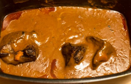 Zutaten: 1 kg Rinderherz 3 Zwiebeln 4 Knoblauchzehen 3 große Karotten 3 EL Tomatenmark 4 EL Preiselbeermarmelade Rinderbrühe oder Gemüsebrühe ½ TL Muskat 1 TL Zimt 2 TL Paprikapulver 10 Körner Piment 2 EL Fett, zum Anbraten Salz und Pfeffer Zubereitung: Das Rinderherz von Adern und Fett be [...]