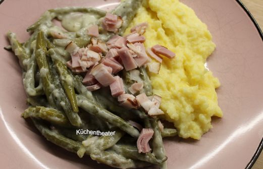 Als die Kinder an einen Wochenende bei uns zum Essen waren blieben Kartoffeln und grüne Bohnen übrig. Weg werfen? Geht nun gar nicht. Darum habe ich folgendes damit gemacht. Zutaten für 4 Personen: 800 g grüne Bohnen 1 kg Kartoffeln Salz 1 Zwiebel 80 g Butter 30 g Mehl 250 ml Gemüsebrühe 450 ml [...]