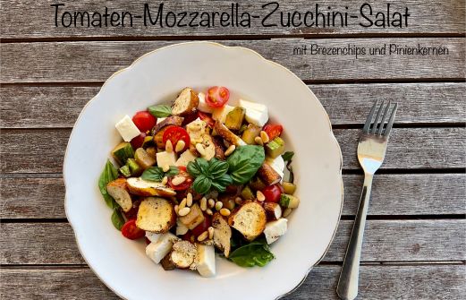 Da ich weiterhin fleißig Zucchini ernten kann, gab es diesen köstlichen Salat aus gebratenen Zucchiniwürfeln, ergänzt mit Cocktailtomaten, Rucola und Basilikum vom Balkon. G etoppt wurde das Ganze mit knusprigen Brezenchips und gerösteten Pinienkernen. Zutaten: für das Topping: 1 EL Pinienkerne [...]