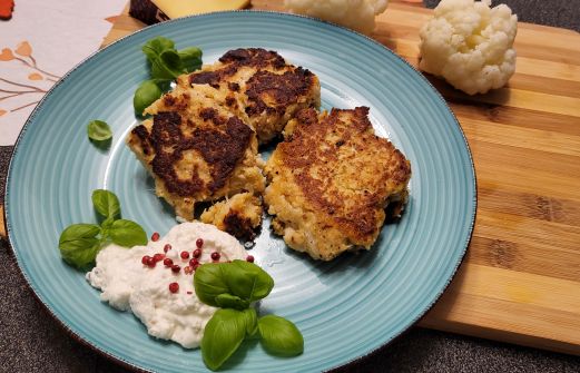 Zutaten für 4 Portionen 300g Blumenkohl (geputzt) 1 Zwiebel 50g Emmentaler Käse 2 Eier 50g Paniermehl 1 Prise Salz 1 Prise Pfeffer 1 Schuss Öl zum Braten 1 Prise Muskatnuss (frisch-gerieben) Zutaten für den Dip 250g Joghurt (natur) 0.5 Zitrone, Abrieb und Saft 1 TL Zucker 1 Prise Salz 1 Prise P [...]