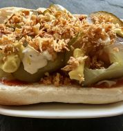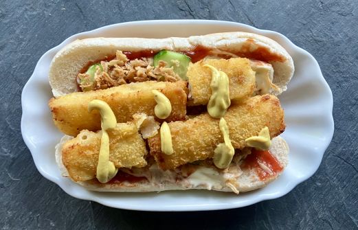 Hot Dog mit Fischstäbchen Es gibt Streetfood, einen Hot Dog mit Fischstäbchen. Nicht üblich, aber er schmeckt auch hier. Wenige Zutaten gut kombiniert machen dieses Gericht aus. Für 1 Portion. Hot Dog Bun Ketschup Mayonaise Gurken (frisch) Röstzwiebeln Fischstäbchen (Fertigprodukt) [...]