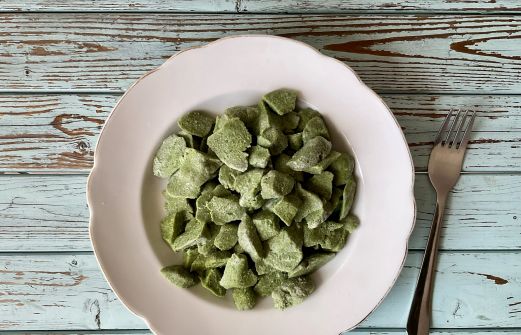 Wenn ihr Bärlauch und Tofu mögt, solltet ihr diese grünen, proteinreichen Nudeln unbedingt ausprobieren. Der Teig hat eine etwas andere Konsistenz als der für gewöhnliche Scherennudeln, er ist kompakter und leicht klebrig, lässt sich aber trotzdem recht gut verarbeiten. Zutaten: 200 g Tofu, gep [...]