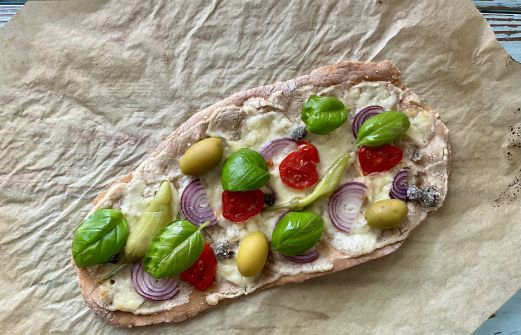 Dieses Mal habe ich den Flammkuchen mit Cashewfrischkäse, Mozzarella, Gemüse und Antipasti belegt. Zutaten: 1 Portion Flammkuchenteig (ich habe 1/6 von diesem Teig verwendet und noch etwas Roggensauerteig hinzugefügt) 2 EL Cashewfrischkäse 60 g Mozzarella, zerrupft 1/8 rote Zwiebel, in Streifen [...]