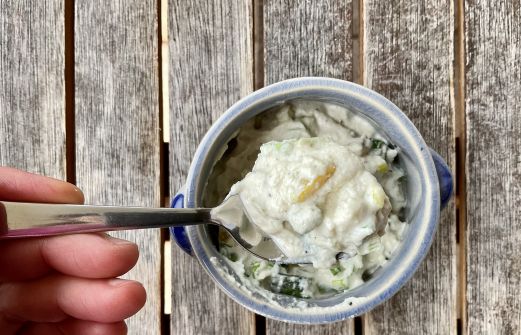 Ich experimentiere weiter mit dem Cashewfrischkäse und habe diesmal einen Aufstrich mit Zitrone und Frühlingszwiebel gebastelt. Zutaten: 2 gehäufte EL Cashewfrischkäse 1 Stückchen Salzzitrone , fein gehackt (alternativ: Zitronenschalenabrieb) 1 Frühlingszwiebel, in feine Ringe geschnitten 1 Sch [...]
