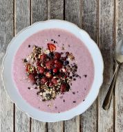 Neulich gab es hier als Resteverwertung eine Hirse-Erdbeer-Bowl . Die Bowl hat so köstlich geschmeckt, dass ich nun öfter Hirse als Basis für mein Frühstück verwenden möchte. Statt Erdbeeren kamen diesmal Birnen (die hatte ich noch im Tiefkühlschrank) mit in den Mixer. Zutaten: 80 g Hirse, geko [...]