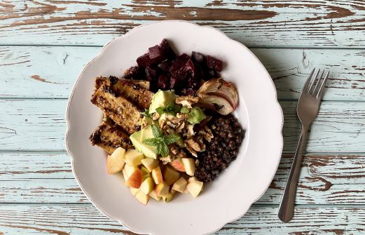 Dieser bunte Salat vereint die herzhaften Aromen von Belugalinsen, Tofu und Roter Bete mit der erfrischenden Süße von Apfel und Minze. Ergänzt wird das Ganze durch cremige Avocado, knackige Walnüsse und einem fruchtigen Erdbeerdressing. Zutaten: für den Salat: 60 g Belugalinsen, gegart 1 kleine [...]