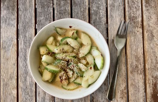 Endlich habe ich den viralen Gurkensalat getestet. Der Salat ist perfekt, um Aggressionen abzubauen - die Gurke wird dabei nämlich ordentlich zermatscht. Viel Spaß beim Ausprobieren. Zutaten: 1 kleine Gurke Salz 1 TL Tahin 1 TL Erdnussmus 1 TL Ahornsirup 1 TL Sojasoße 2 TL Reisessig 1 Knoblauch [...]