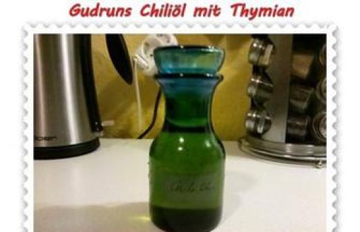 zutaten_2sp"> Zutaten für Personen Rezept mit Bild: Chiliöl mit Thymian Bild einstellen 125 ml Olivenöl extra vergine 125 ml Rapsöl 1 El Thymian 6 rote Chilis, in feine Streifen geschnitten [...]