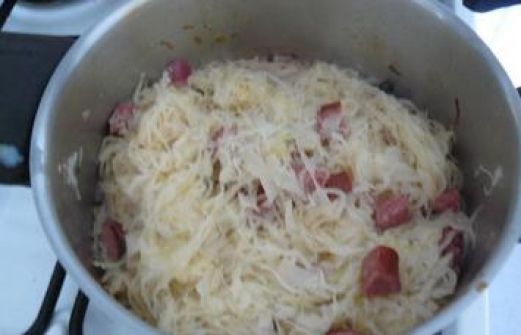 zutaten_2sp"> Zutaten für Personen Rezept mit Bild: Bigos Bild einstellen 750 Gramm Weinsauerkraut 150 Gramm Cabanossi 250 ml Weißwein 2 Zwiebeln Wacholderbeeren Lorbeerblatt Kümmel 1 Stk. [...]