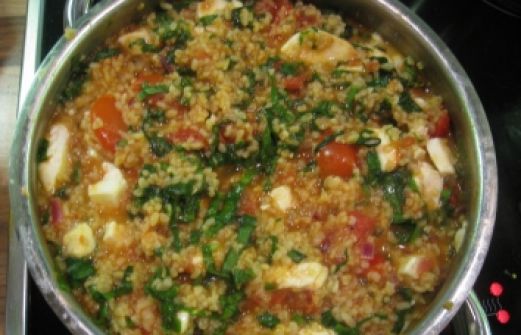 zutaten_2sp"> Zutaten für Personen Bild einstellen 1 Stück Zwiebel gewürfelt 1 Dose Tomaten gewürfelt 400 Gramm frische Tomaten gewürfelt 1.5 - 2 grosse Tassen Bulgur 2 Packungen Mozzarella gewürfelt 2 Hände voll Bärlauch [...]