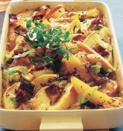 Apfel-Lauch-Gratin Zutaten 400 g Lauch 1 säuerlicher Apfel 1 EL Butterschmalz 100 ml Gemüsebrühe 75 g Frischkäse Salz Pfeffer ½ TL getrockneter Majoran 75 g geriebener Emmentaler ½ Bund Petersilie guk:similarity-keywords=""> 400 g Lauch , 1 säuerlicher Apfel [...]