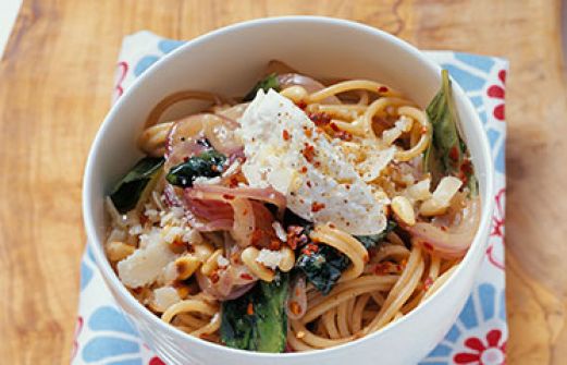 Vollkornspaghetti mit Vanillezwiebeln und Ricotta Zutaten 250 g Vollkornspaghetti 200 g rote Zwiebeln ½ Vanilleschote 20 g Pinienkerne 2 Stängel Basilikum (15-20 mittelgroße Blätter) 2 EL Olivenöl Salz schwarzer Pfeffer aus der Mühle 2 Prisen getrocknete Chiliflocken 1 EL But [...]