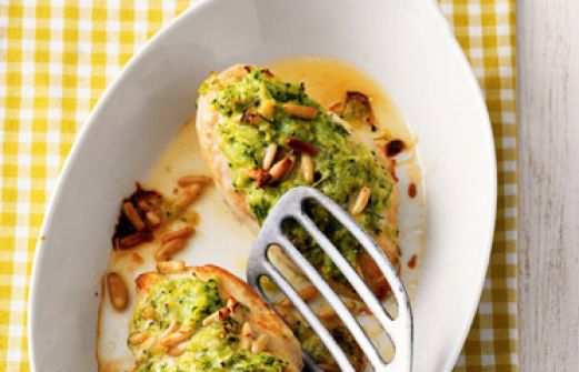 Hähnchenbrust mit Zucchini-Zitronen-Haube Zutaten 1 junger Zucchino (ca. 200 g) Salz 4 Hähnchenbrustfilets (à ca. 170 g) Pfeffer 1 Bio-Zitrone 8 Zweige Thymian 60 g frisch geriebener Pecorino oder Manchego 2 EL Pinienkerne 1 EL Butter 2 EL Olivenöl guk:similarity-keywords [...]