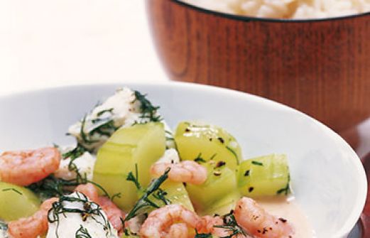 Fisch-Krabben-Ragout Zutaten 1 Salatgurke 2 Schalotten 1 Bund Dill 600 g Fischfilet (z. B. Steinbeißer, Kabeljau oder Rotbarsch) 2 EL Weißweinessig 2 EL Butter 1/8 l Fischfond Salz Pfeffer aus der Mühle 125 g Crème fraîche 100 g gepulte Nordseekrabben 1/2 TL edelsüßes Pap [...]