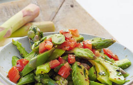 Avocado-Spargel-Salat Zutaten 500 g grüner Spargel Salz 2 reife, aber feste Avocados 1-2 EL frisch gepresster Zitronensaft 2 große Tomaten 3 Stängel Estragon 1 1/2 TL Dijon-Senf Saft von 1 Orange 4 EL Weißweinessig 7 EL Olivenöl Pfeffer guk:similarity-keywords=""> [...]