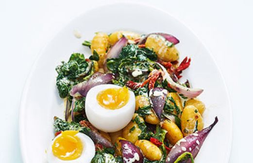Spinat-Zwiebel-Gnocchi Zutaten 250 g rote Zwiebeln 2 EL Olivenöl 500-600 g Gnocchi (aus dem Kühlregal) 300 g TK-Blattspinat 1/8 l Gemüsebrühe 8 Eier 8 getrocknete Tomaten (in Öl) 100 g Mascarpone Salz Pfeffer aus der Mühle guk:similarity-keywords=""> 250 g rote Zwi [...]