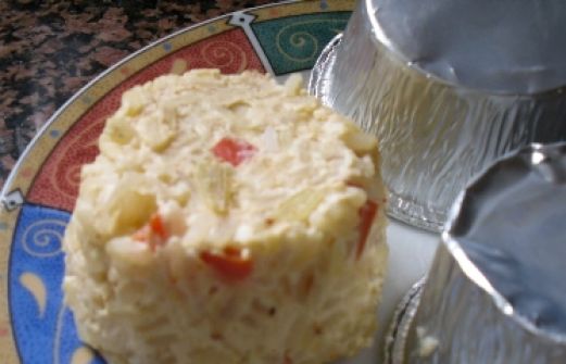 Reis-"Deckelchen" - als Törtchen gebacken mit ofengegarten Tomaten Zutaten 100 g Langkornreis Salz und Pfeffer 80 g Frühlingszwiebeln - gewürfelt - 1 gelbe Paprikaschote 1 gehackte Knoblauchzehe 1 EL Olivenöl 100 g Frischkäse 1 Ei 1 TL Roter Pfeffer und Kümmel 1 kleines Stück In [...]