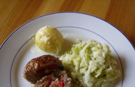 Frikadellen - gefüllt mit Tomaten, Mozzarrella und Basilikum Zutaten 500 g Hackfleisch 2 Eier 1 TL Senf 1 Brötchen/Semmel 1 Mozzarrellakäse pro Person 1 kleine Tomate und ein Blättchen Basilikum Salz und Pfeffer zum Braten: 50 g Butter guk:similarity-keywords=""> 500 g Ha [...]