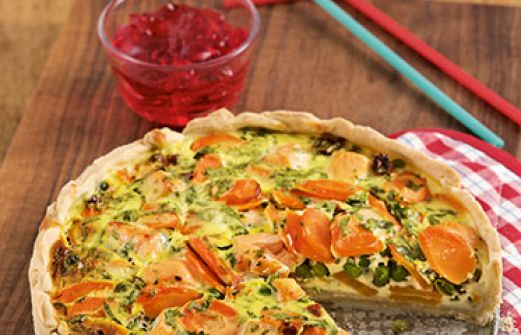 Gemüsekuchen Zutaten 250 g Mehl 5 EL Öl Salz Salz 400 g Möhren 300 g TK-Erbsen 40 g getrocknete Tomaten 200 g Lachsfilet 2 Eier 250 g Magerquark 3 EL gehackte TK-Petersilie Pfeffer 1 Flasche Bionade (330 ml) 125 g Götterspeise (Fertigprodukt) 1 Springform (Ø 26 cm) [...]