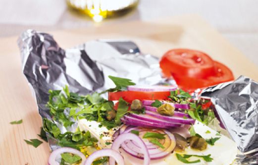 Feta in der Folie Zutaten 4 Stücke Feta (Schafskäse; je 150–200 g) 2 rote Zwiebeln 200 g Strauchtomaten 1 Bund Petersilie 4–5 EL Olivenöl frisch gemahlener schwarzer Pfeffer 1–2 TL Kapern Und: starke Alufolie guk:similarity-keywords=""> 4 Stücke Feta (Schafskäse; je 15 [...]