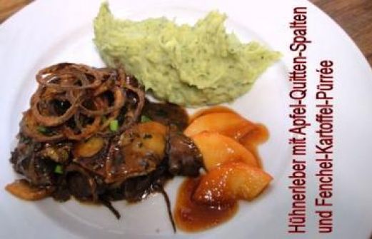 zutaten_2sp"> Zutaten für Personen Rezept mit Bild: Hühnerleber mit Apfel-Quitte-Spalten und Fenchel-Kartoffelpürrée Bild einstellen zur Leber 800 gr. Hühnerleber 2 Stk. Zwiebeln frisch 1 Bund Petersi [...]