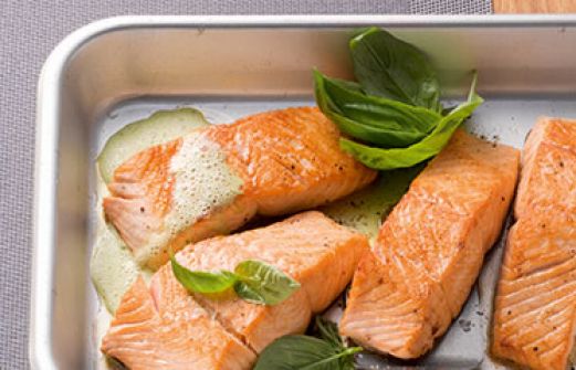 Basilikum-Butter-Sauce zu gebratenem Lachs Zutaten 4 Lachsfilets mit Haut (à ca. 220 g) Meersalz, z. B. Fleur de Sel 2 EL Olivenöl 1 Schalotte (ca. 40 g) 1 EL Olivenöl 50 ml trockener Weißwein 50 ml Noilly Prat 300 ml Fischfond 3 gehäufte EL Crème fraîche 1 gehäufter TL Speisest [...]
