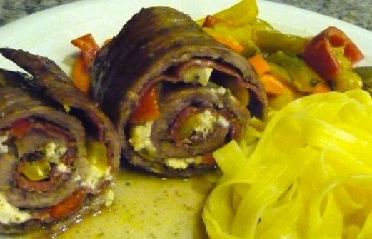 Rouladen mediterrane Art Zutaten 2 Rindsrouladen 50 g Salami 1/2 rote Paprikaschote 1/2 gelbe Paprikaschote 50 g Schafskäse Italienische Kräuter Salz und Pfeffer Weißwein wer mag Öl zum Braten guk:similarity-keywords=""> 2 Rindsrouladen , 50 g Salami , 1/2 rote Pa [...]