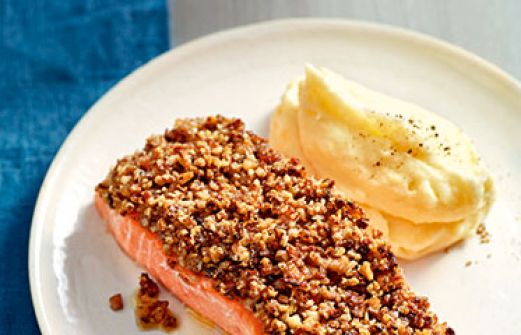 Lachs mit Pilzkruste Zutaten 400 g gemischte Pilze (z. B. Champignons, Egerlinge, Kräuterseitlinge) 1 Schalotte 1 EL Butter Salz Pfeffer 1 TL Waldpilzpulver 50 g Walnusskerne 50 g Pinienkerne 1 EL Olivenöl 4 Lachsfilets (à ca. 150 g) einige Spritzer Zitronensaft guk:sim [...]