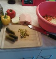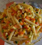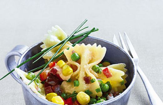 Bunter Nudelsalat Zutaten 200 g Farfalle Salz 150 g TK-Erbsen 150 g Salami (am Stück) 1 rote Paprikaschote 150 g Mais (aus der Dose) 100 g Salatmayonnaise 150 g Sahnejoghurt 3 EL Tomatenketchup Pfeffer edelsüßes Paprikapulver 1 Bund Schnittlauch guk:similarity-keyword [...]
