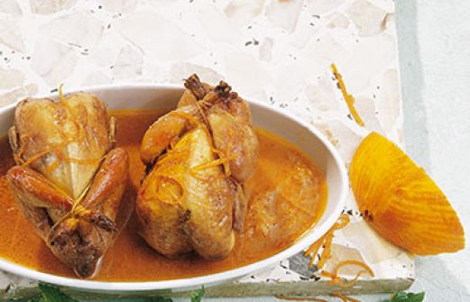 Wachteln in Orangen-Grappa-Sauce Zutaten 8 Wachteln (küchenfertig) 50 g Butter 1 EL Olivenöl Salz Pfeffer, frisch gemahlen 2 unbehandelte Orangen 4 EL Grappa etwa 150 ml Hühnerbrühe Küchengarn guk:similarity-keywords=""> 8 Wachteln (küchenfertig) , 50 g Butter , [...]